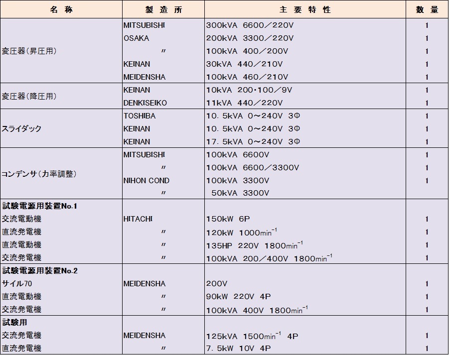 | ・ 同期発電機 | ・ 各種配電盤 | ・ 各抵抗器 |